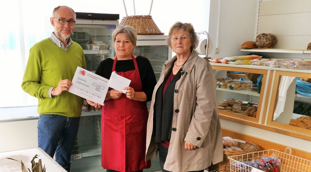 Sie bedankten sich für die Spende und machten sich wieder an die Arbeit, weil schon die ersten Kunden auf die Ladenöffnung warteten.