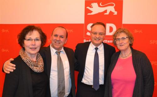 Kreisrätin E. Pudleiner, SPD-Landtagskandidat Egon Beck, Kultusminister Andreas Stoch und H. Wälzel-Köster