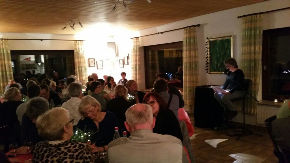 Das Wildschweingulasch in Schokoladensoße mit Kartoffelklößchen und Rotkraut war zwar durchaus eine „Delikatesse“, aber nicht aus dem Fleisch des ermordeten (Ex-)Freundes. Den krönenden Abschluss machte ein Parfait von Mannemer Dreck mit Pflaumenragout und Rotweinsorbet. Dazu wurde „Himmlisch süß – höllisch bitter“ gelesen.